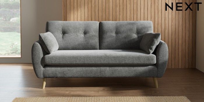 7.2.10 Wilson Buttoned Back 3 Seater Small Sofa Chunky Chenille Dark Grey Retro Tapered - Light | Made Click here to use our website with more accessibility support, for example screen readers