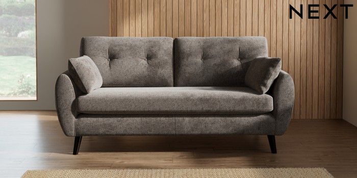 7.2.10 Wilson Buttoned Back 3 Seater Small Sofa Chunky Chenille Mink Brown Retro Tapered - Dark | Made Click here to use our website with more accessibility support, for example screen readers