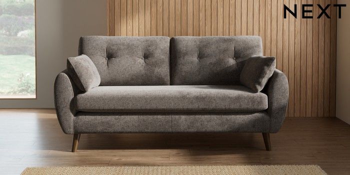 7.2.10 Wilson Buttoned Back 3 Seater Small Sofa Chunky Chenille Mink Brown Retro Tapered - Mid | Made Click here to use our website with more accessibility support, for example screen readers