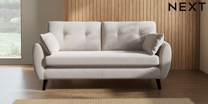 7.2.10 Wilson Buttoned Back 3 Seater Small Sofa Chunky Chenille Oyster Retro Tapered - Dark | Made Click here to use our website with more accessibility support, for example screen readers