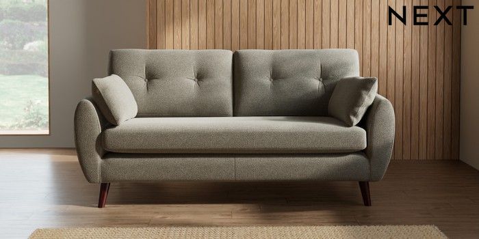 7.2.10 Wilson Buttoned Back 3 Seater Small Sofa Chunky Marl Light Olive Green Retro Tapered - Dark Brown | Made Click here to use our website with more accessibility support, for example screen readers