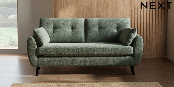 7.2.10 Wilson Buttoned Back 3 Seater Small Sofa Chunky Texture Mid Forest Green Retro Tapered - Dark | Made Click here to use our website with more accessibility support, for example screen readers