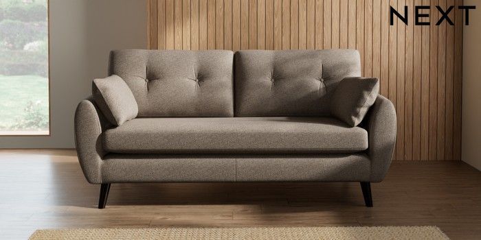 7.2.10 Wilson Buttoned Back 3 Seater Small Sofa Chunky Weave Dark Natural Retro Tapered - Dark | Made Click here to use our website with more accessibility support, for example screen readers