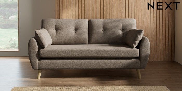 7.2.10 Wilson Buttoned Back 3 Seater Small Sofa Chunky Weave Dark Natural Retro Tapered - Light | Made Click here to use our website with more accessibility support, for example screen readers