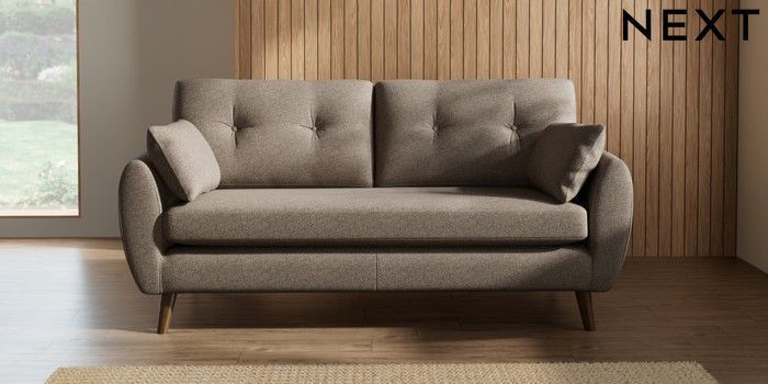 7.2.10 Wilson Buttoned Back 3 Seater Small Sofa Chunky Weave Dark Natural Retro Tapered - Mid | Made Click here to use our website with more accessibility support, for example screen readers