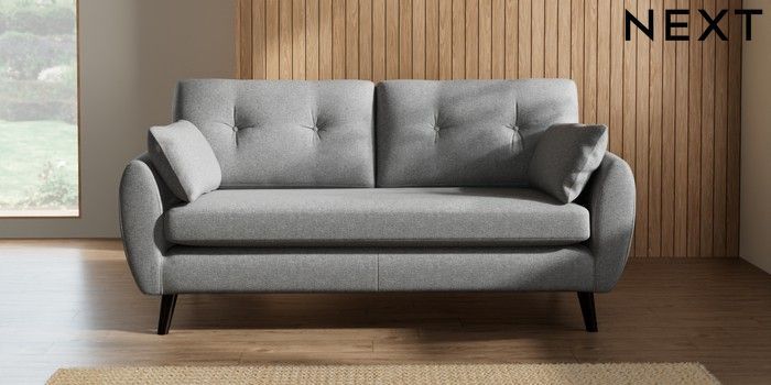7.2.10 Wilson Buttoned Back 3 Seater Small Sofa Chunky Weave Mid Grey Retro Tapered - Dark | Made Click here to use our website with more accessibility support, for example screen readers
