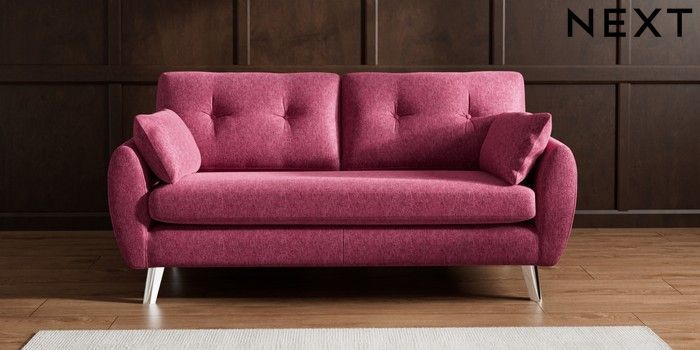 7.2.10 Wilson Buttoned Back 3 Seater Small Sofa Cotswold Chenille Dark Raspberry Pink Metal Tapered - Chrome | Made Click here to use our website with more accessibility support, for example screen readers