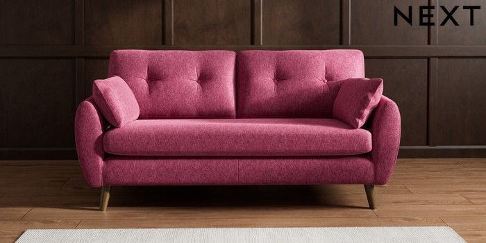 7.2.10 Wilson Buttoned Back 3 Seater Small Sofa Cotswold Chenille Dark Raspberry Pink Retro Tapered - Mid | Made Click here to use our website with more accessibility support, for example screen readers