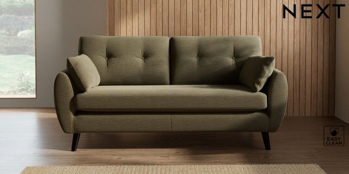 7.2.10 Wilson Buttoned Back 3 Seater Small Sofa Fine Chenille Easy Clean Dark Moss Green Retro Tapered - Dark | Made Click here to use our website with more accessibility support, for example screen readers