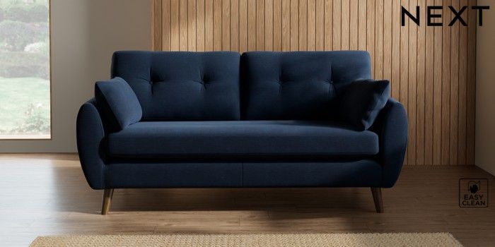 7.2.10 Wilson Buttoned Back 3 Seater Small Sofa Fine Chenille Easy Clean Dark Navy Blue Retro Tapered - Mid | Made Click here to use our website with more accessibility support, for example screen readers