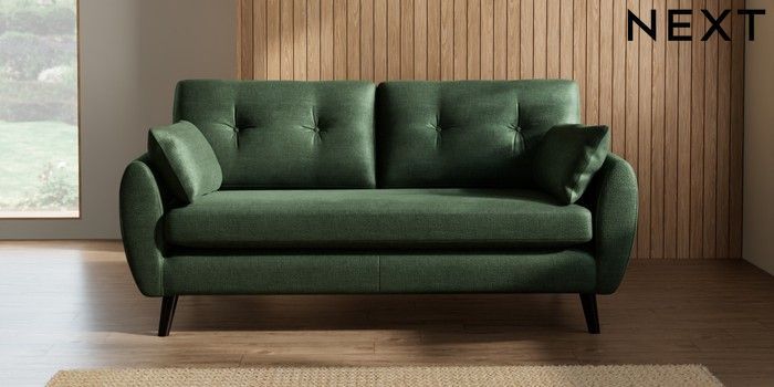 7.2.10 Wilson Buttoned Back 3 Seater Small Sofa Luxe Chenille Dark Green Retro Tapered - Dark | Made Click here to use our website with more accessibility support, for example screen readers