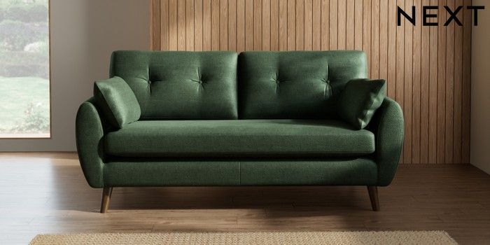 7.2.10 Wilson Buttoned Back 3 Seater Small Sofa Luxe Chenille Dark Green Retro Tapered - Mid | Made Click here to use our website with more accessibility support, for example screen readers