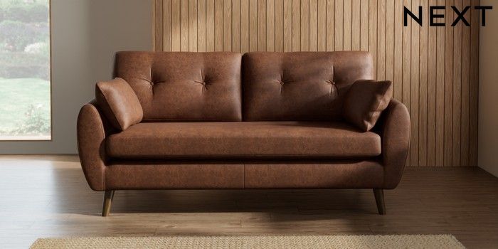 7.2.10 Wilson Buttoned Back 3 Seater Small Sofa Monza Faux Leather Easy Clean Chestnut Brown Retro Tapered - Mid | Made Click here to use our website with more accessibility support, for example screen readers