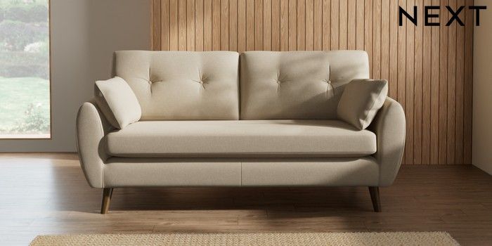 7.2.10 Wilson Buttoned Back 3 Seater Small Sofa Natural Mix Light Natural Retro Tapered - Mid | Made Click here to use our website with more accessibility support, for example screen readers