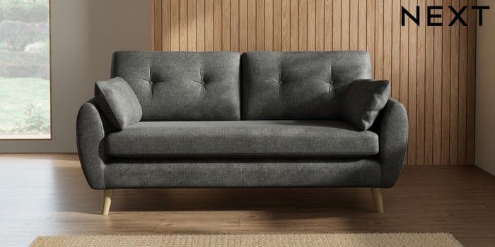 7.2.10 Wilson Buttoned Back 3 Seater Small Sofa Plush Chenille Dark Grey Retro Tapered - Light | Made Click here to use our website with more accessibility support, for example screen readers