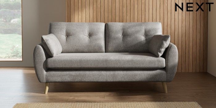 7.2.10 Wilson Buttoned Back 3 Seater Small Sofa Plush Chenille Light Grey Retro Tapered - Light | Made Click here to use our website with more accessibility support, for example screen readers