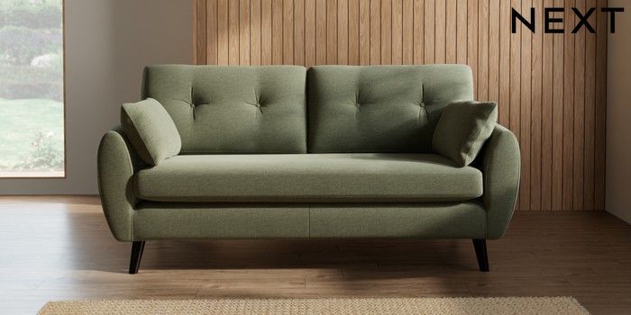 7.2.10 Wilson Buttoned Back 3 Seater Small Sofa Ripple Chenille Mid Moss Green Retro Tapered - Dark | Made Click here to use our website with more accessibility support, for example screen readers