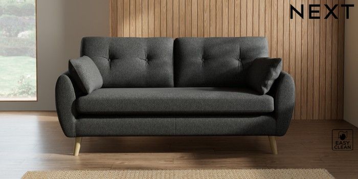 7.2.10 Wilson Buttoned Back 3 Seater Small Sofa Tweedy Blend Easy Clean Charcoal Grey Retro Tapered - Light | Made Click here to use our website with more accessibility support, for example screen readers