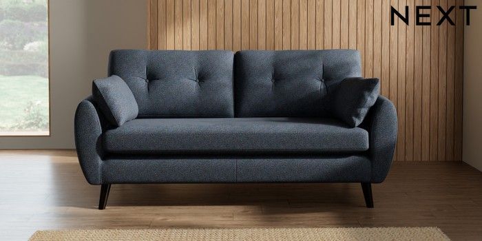 7.2.10 Wilson Buttoned Back 3 Seater Small Sofa Tweedy Chenille Navy Blue Retro Tapered - Dark | Made Click here to use our website with more accessibility support, for example screen readers