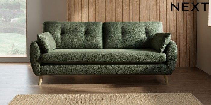 7.2.10 Wilson Buttoned Back 3 Seater Sofa Boucle Chenille Dark Moss Green Retro Tapered - Light | Made Click here to use our website with more accessibility support, for example screen readers