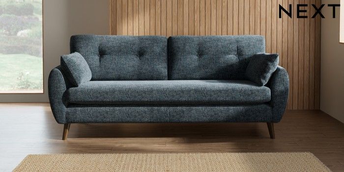7.2.10 Wilson Buttoned Back 3 Seater Sofa Chunky Chenille Dark Navy Blue Retro Tapered - Mid | Made Click here to use our website with more accessibility support, for example screen readers