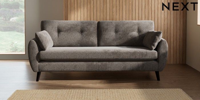 7.2.10 Wilson Buttoned Back 3 Seater Sofa Chunky Chenille Mink Brown Retro Tapered - Dark | Made Click here to use our website with more accessibility support, for example screen readers