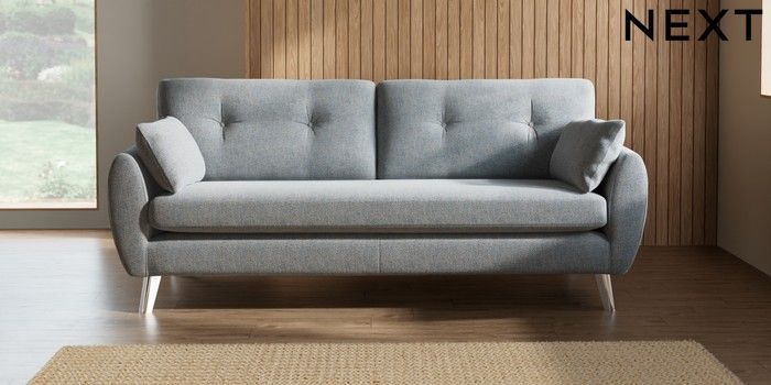 7.2.10 Wilson Buttoned Back 3 Seater Sofa Chunky Marl Mid Grey Metal Tapered - Chrome | Made Click here to use our website with more accessibility support, for example screen readers