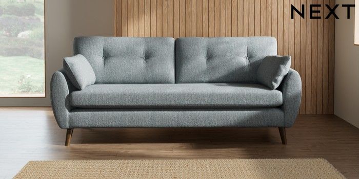 7.2.10 Wilson Buttoned Back 3 Seater Sofa Chunky Weave Mid Blue Retro Tapered - Mid | Made Click here to use our website with more accessibility support, for example screen readers