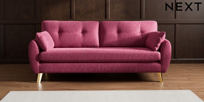7.2.10 Wilson Buttoned Back 3 Seater Sofa Cotswold Chenille Dark Raspberry Pink Metal Tapered - Gold | Made Click here to use our website with more accessibility support, for example screen readers