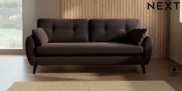 7.2.10 Wilson Buttoned Back 3 Seater Sofa Fine Chenille Easy Clean Chocolate Brown Retro Tapered - Dark | Made Click here to use our website with more accessibility support, for example screen readers