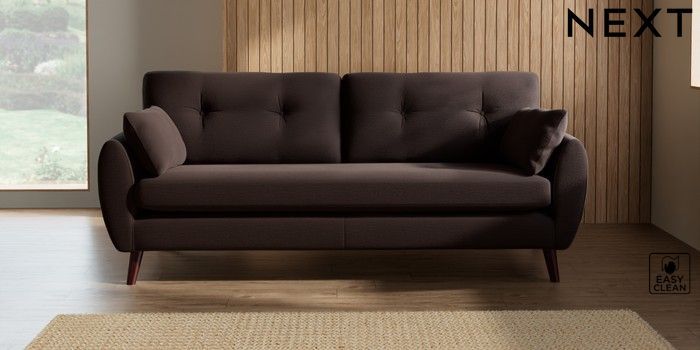 7.2.10 Wilson Buttoned Back 3 Seater Sofa Fine Chenille Easy Clean Chocolate Brown Retro Tapered - Dark Brown | Made Click here to use our website with more accessibility support, for example screen readers