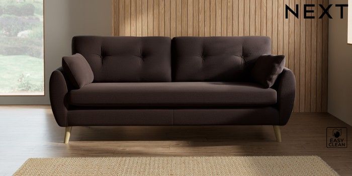7.2.10 Wilson Buttoned Back 3 Seater Sofa Fine Chenille Easy Clean Chocolate Brown Retro Tapered - Light | Made Click here to use our website with more accessibility support, for example screen readers