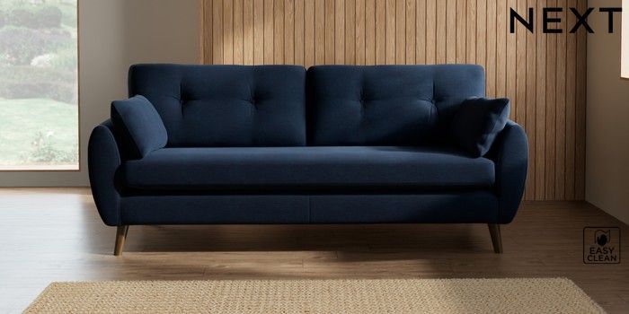 7.2.10 Wilson Buttoned Back 3 Seater Sofa Fine Chenille Easy Clean Dark Navy Blue Retro Tapered - Mid | Made Click here to use our website with more accessibility support, for example screen readers