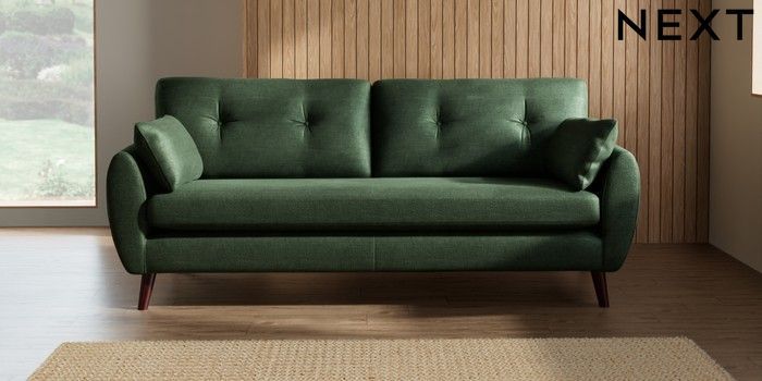 7.2.10 Wilson Buttoned Back 3 Seater Sofa Luxe Chenille Dark Green Retro Tapered - Dark Brown | Made Click here to use our website with more accessibility support, for example screen readers
