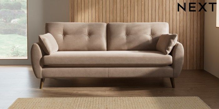 7.2.10 Wilson Buttoned Back 3 Seater Sofa Luxe Chenille Mid Natural Retro Tapered - Mid | Made Click here to use our website with more accessibility support, for example screen readers