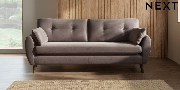 7.2.10 Wilson Buttoned Back 3 Seater Sofa Luxe Chenille Mink Brown Retro Tapered - Mid | Made Click here to use our website with more accessibility support, for example screen readers