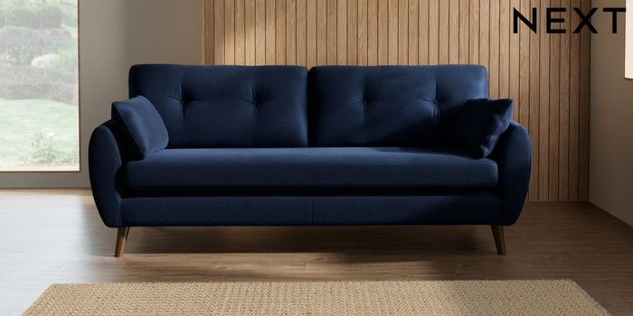7.2.10 Wilson Buttoned Back 3 Seater Sofa Luxe Chenille Navy Blue Retro Tapered - Mid | Made Click here to use our website with more accessibility support, for example screen readers