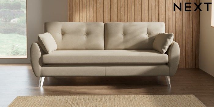 7.2.10 Wilson Buttoned Back 3 Seater Sofa Natural Mix Light Natural Metal Tapered - Chrome | Made Click here to use our website with more accessibility support, for example screen readers