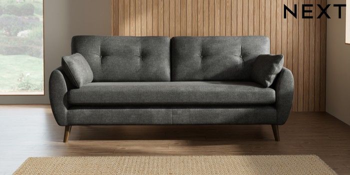 7.2.10 Wilson Buttoned Back 3 Seater Sofa Plush Chenille Dark Grey Retro Tapered - Mid | Made Click here to use our website with more accessibility support, for example screen readers