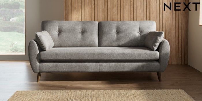 7.2.10 Wilson Buttoned Back 3 Seater Sofa Plush Chenille Light Grey Retro Tapered - Mid | Made Click here to use our website with more accessibility support, for example screen readers