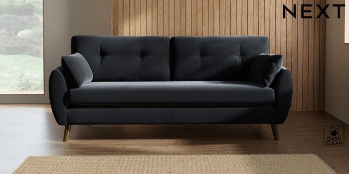 7.2.10 Wilson Buttoned Back 3 Seater Sofa Plush Velvet Easy Clean Charcoal Grey Retro Tapered - Mid | Made Click here to use our website with more accessibility support, for example screen readers
