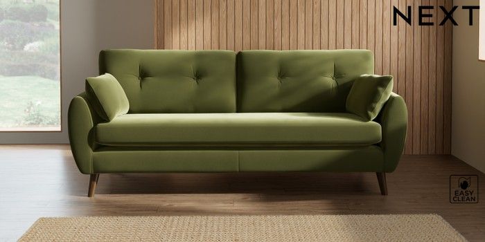 7.2.10 Wilson Buttoned Back 3 Seater Sofa Plush Velvet Easy Clean Mid Olive Green Retro Tapered - Mid | Made Click here to use our website with more accessibility support, for example screen readers