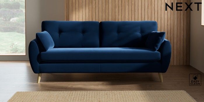7.2.10 Wilson Buttoned Back 3 Seater Sofa Plush Velvet Easy Clean Navy Blue Retro Tapered - Light | Made Click here to use our website with more accessibility support, for example screen readers