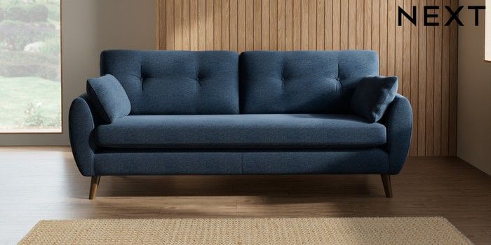 7.2.10 Wilson Buttoned Back 3 Seater Sofa Ripple Chenille Dark Blue Retro Tapered - Mid | Made Click here to use our website with more accessibility support, for example screen readers