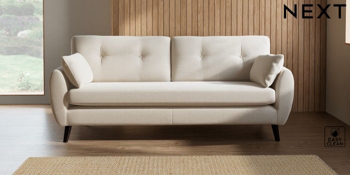 7.2.10 Wilson Buttoned Back 3 Seater Sofa Tweedy Blend Easy Clean Oyster Retro Tapered - Dark | Made Click here to use our website with more accessibility support, for example screen readers