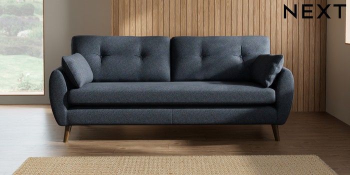 7.2.10 Wilson Buttoned Back 3 Seater Sofa Tweedy Chenille Navy Blue Retro Tapered - Mid | Made Click here to use our website with more accessibility support, for example screen readers