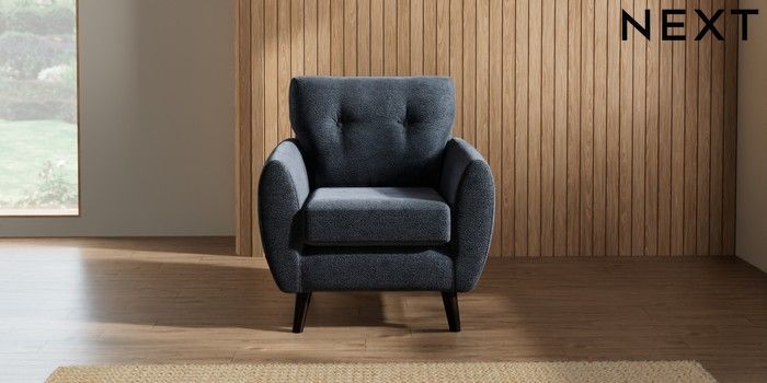 7.2.10 Wilson Buttoned Back Armchair Boucle Chenille Dark Slate Blue Retro Tapered - Dark | Made Click here to use our website with more accessibility support, for example screen readers