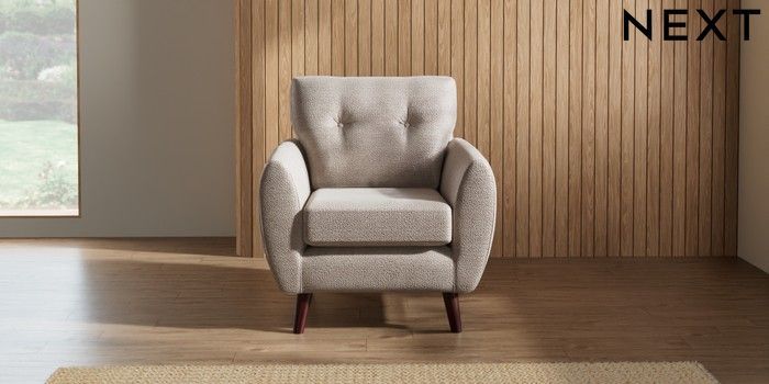 7.2.10 Wilson Buttoned Back Armchair Boucle Chenille Light Natural Retro Tapered - Dark Brown | Made Click here to use our website with more accessibility support, for example screen readers