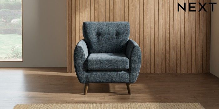 7.2.10 Wilson Buttoned Back Armchair Chunky Chenille Dark Navy Blue Retro Tapered - Mid | Made Click here to use our website with more accessibility support, for example screen readers
