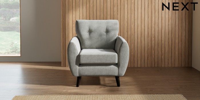 7.2.10 Wilson Buttoned Back Armchair Chunky Chenille Light Grey Retro Tapered - Dark | Made Click here to use our website with more accessibility support, for example screen readers